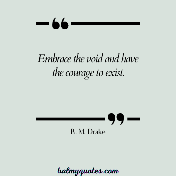 #30. “Embrace the void and have the courage to exist.” – R. M. Drake